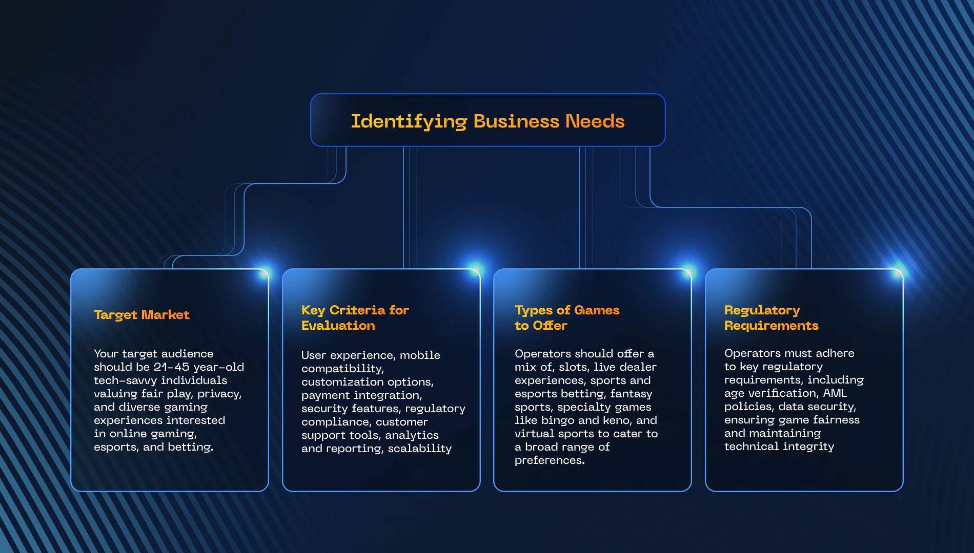 In the context of choosing the best online casino builder for your business, identifying and assessing business needs is crucial for a successful venture. Here's how you can approach this: