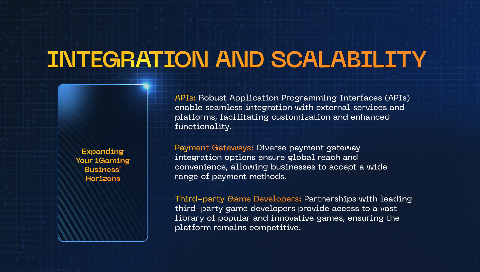 A seamless integration capability with third-party services, such as payment gateways, game developers, and security protocols, is crucial. Providers that offer APIs for easy integration with leading payment processors, including cryptocurrencies, cater to a broader audience and ensure a smooth transactional experience. The integration of games from renowned developers not only enriches your portfolio but also instills trust in your platform.