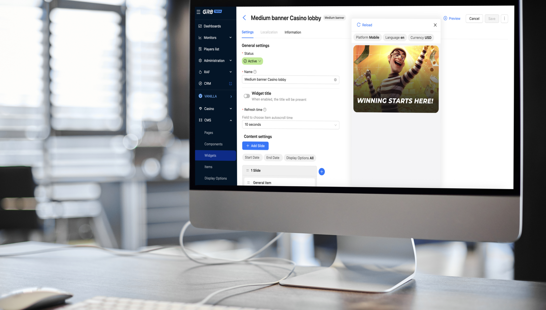 From now on, all management, configuration, and interactions with the casino services UI can be done directly through the CMS interface, eliminating the need for EVA. This simplifies processes and empowers operators to manage their casino offerings more effectively.