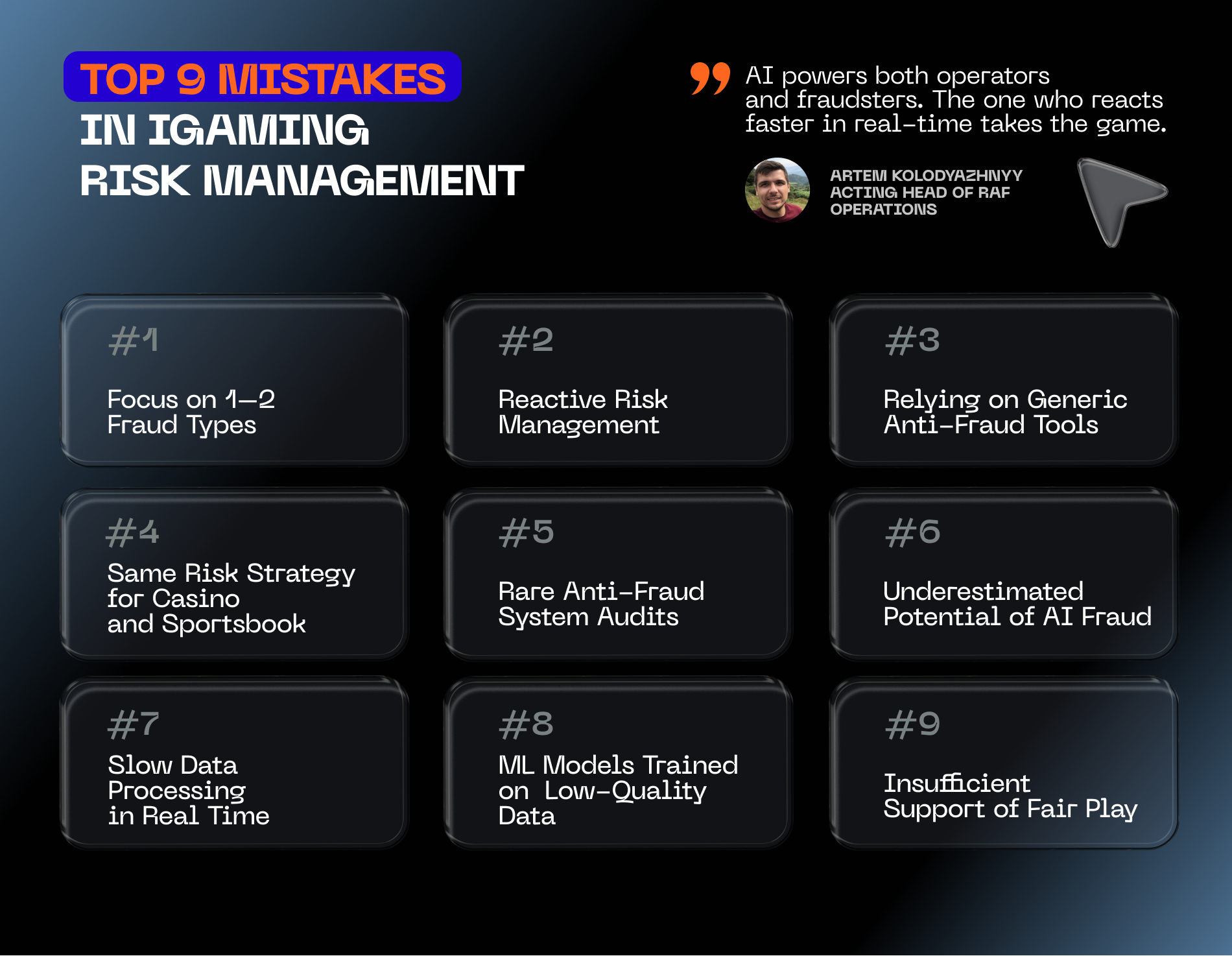 At the same time, I see many anti-fraud tools that focus on just one or two areas. Even those powered by AI often leave critical blind spots. But partial protection isn’t protection at all. It damages not just the operator’s security but also their reputation.