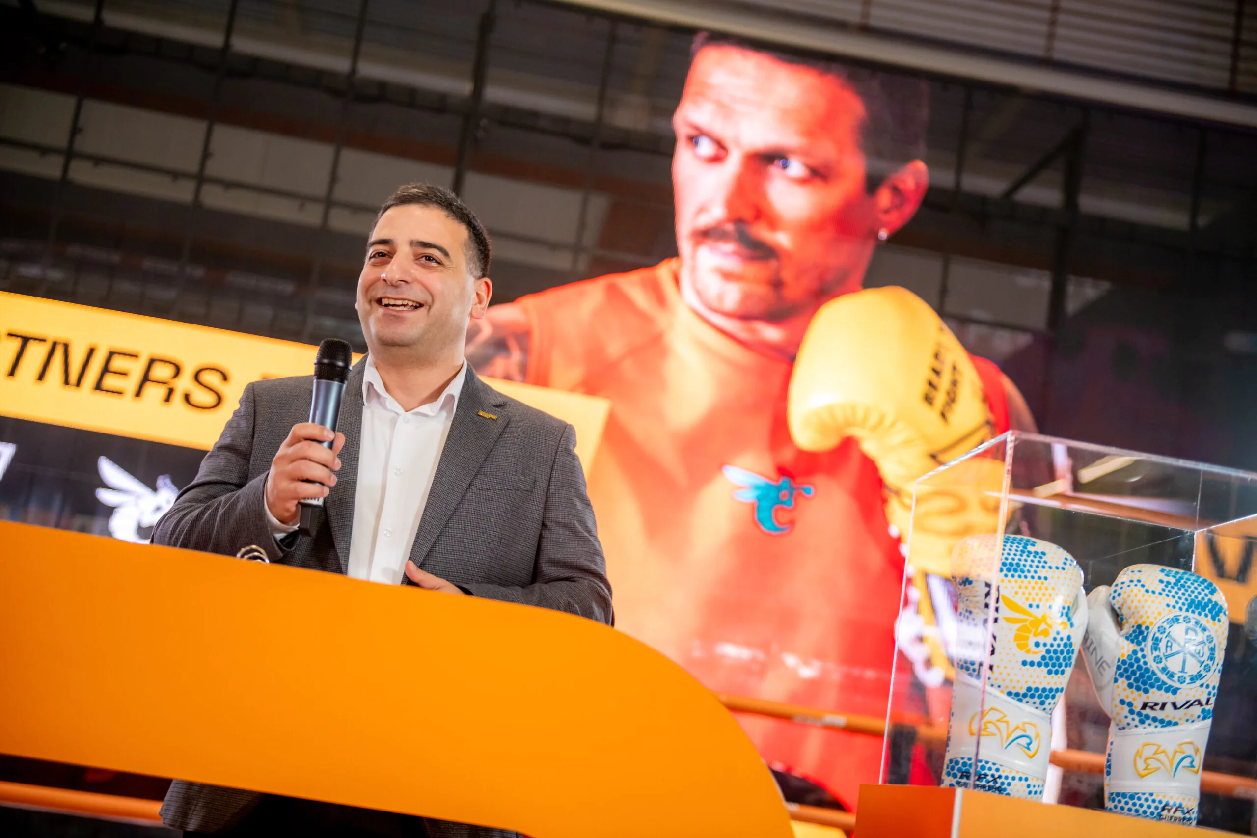 Throughout the partnership announcement and celebration, GR8 Tech showcased signed boxing gloves worn by Oleksandr Usyk during his historic victory over Tyson Fury in the spring of 2024. These gloves, complete with a certificate of authenticity, were prominently displayed in the ring area of the stand, symbolizing the unstoppable performance that both Usyk and GR8 Tech bring to the table.