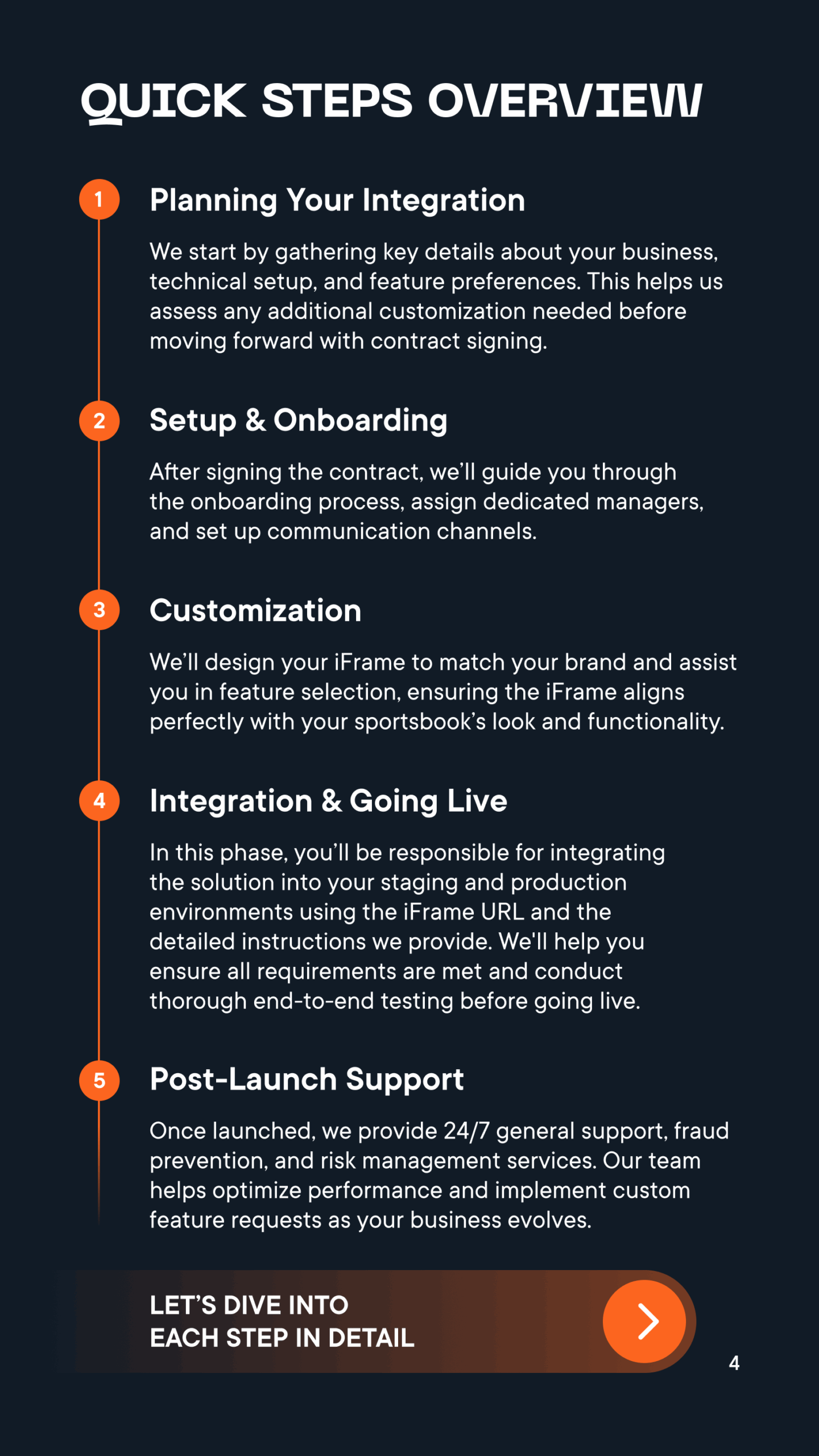 - A phased roadmap of iFrame integration — from kick-off call to final validation